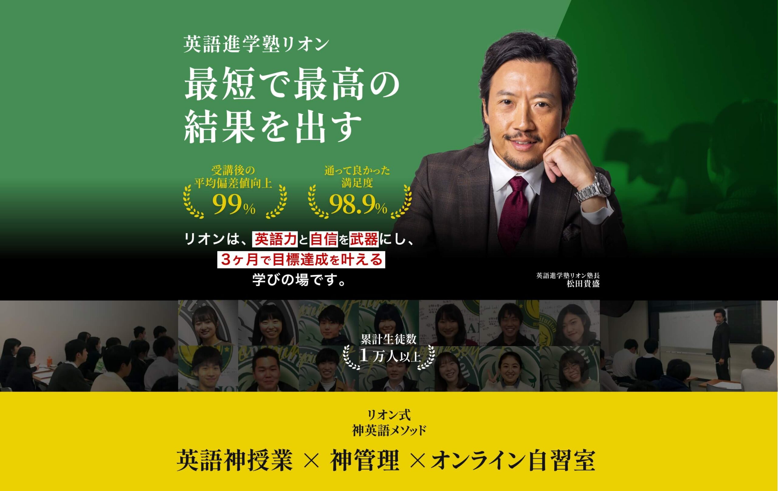 リオン塾長が作り上げたリオン式英語メソッドは、20年以上にわたって数多くの英語が苦手な学生たちの英語学習に奇跡を起こしてきました。